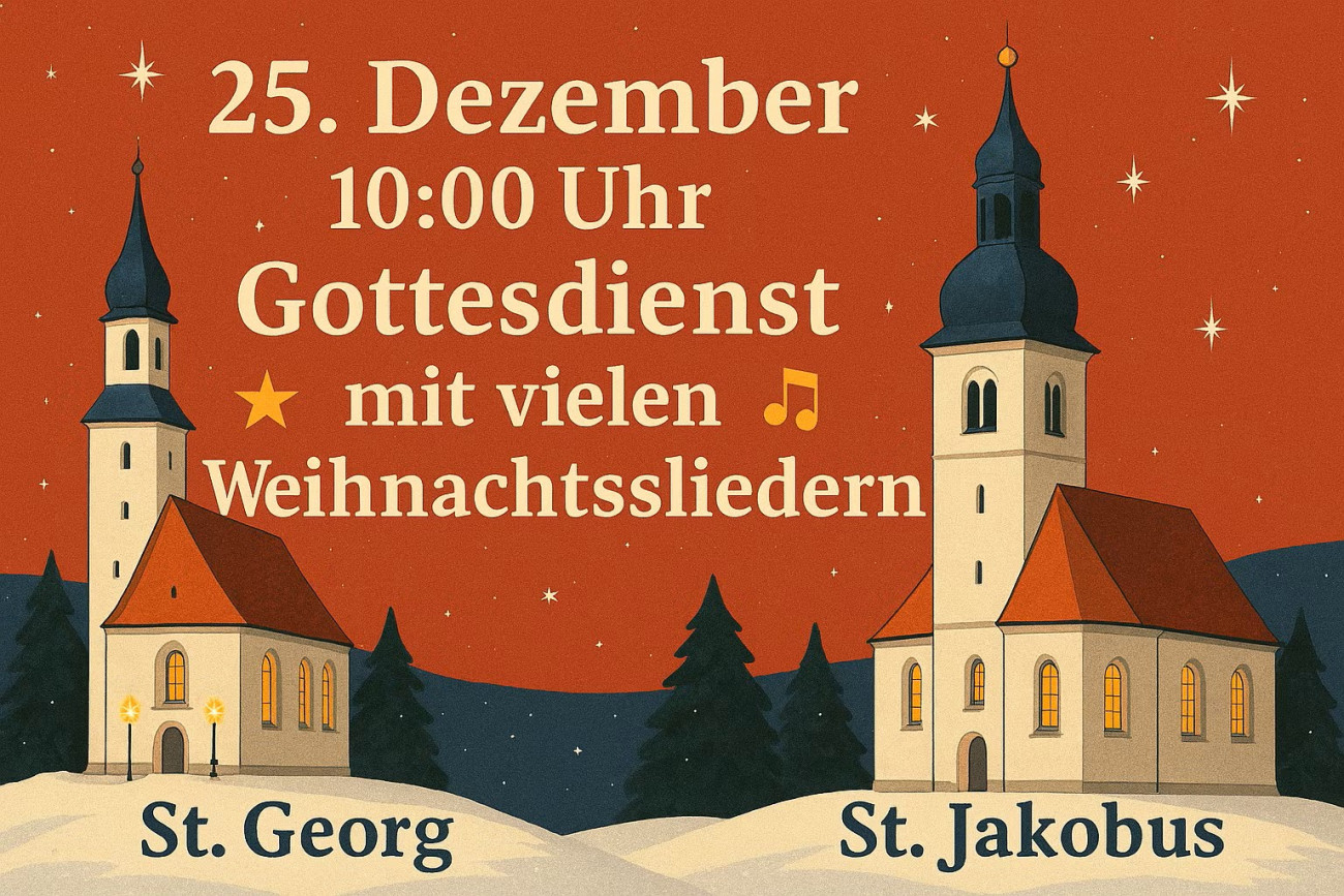 Am 25. Dezember um 10 Uhr feiern wir, die Kirchengemeinden Igensdorf und Kirchrüsselbach in St. Georg einen ganz besonderen Gottesdienst – mit extra vielen Weihnachtsliedern! 🎶💫